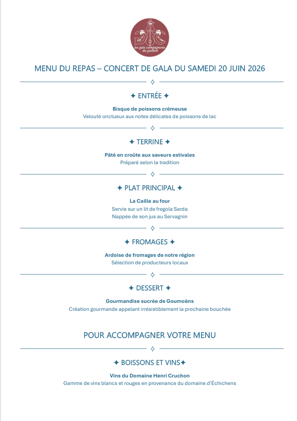 Repas - Concert de gala du Samedi 20 juin 2026